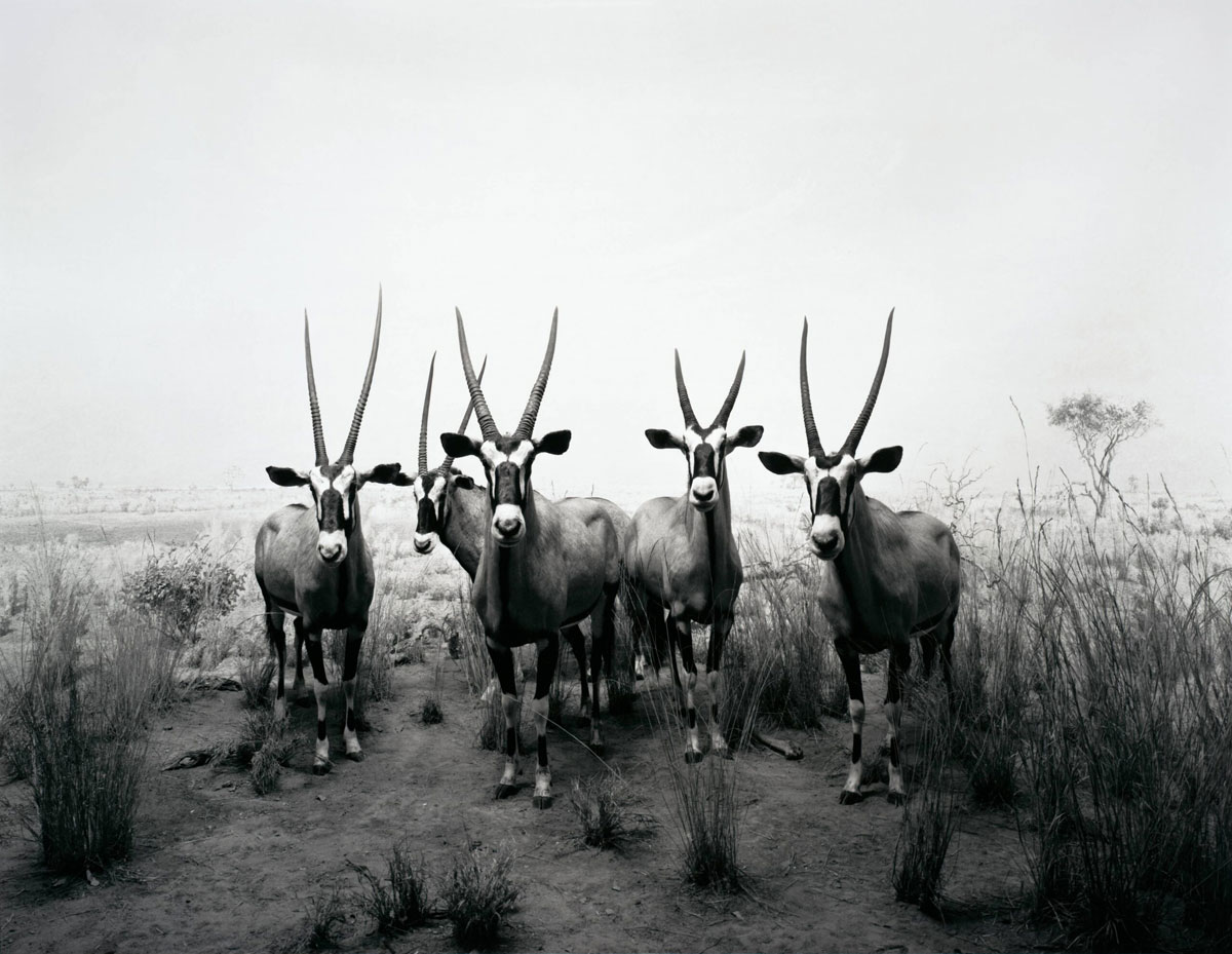 One of the best-known engagements with the diorama form is Japanese photographer Hiroshi Sugimoto’s series featuring the habitat dioramas of the American Museum of Natural History (Fig. 4). Sugimoto sought to interrogate the relationship between the image and the real, and photography’s capacity to confuse the two.29 Beginning in 1976, Sugimoto returned to the museum four times to photograph the dioramas. The resulting images are undeniably satisfying, lush and rich gelatin silver prints. Smoothing out any ripples in the habitat diorama’s surface, concealing its hints of kitsch and artificiality, the photographs offer instead a world of stilled, crystalline order. Sugimoto leans into the diorama’s lie and thus renews the magic of encounter, reproducing, for example, the surprise of coming face to face with the magnificent gemsbok.30 But he also casts the spectator further into abeyance. No longer sure if we are looking at a photograph of a live animal or its dead proxy, the image serves to destabilize us, reminding us perhaps just how far from nature we have come — without, however, offering us a way back in.