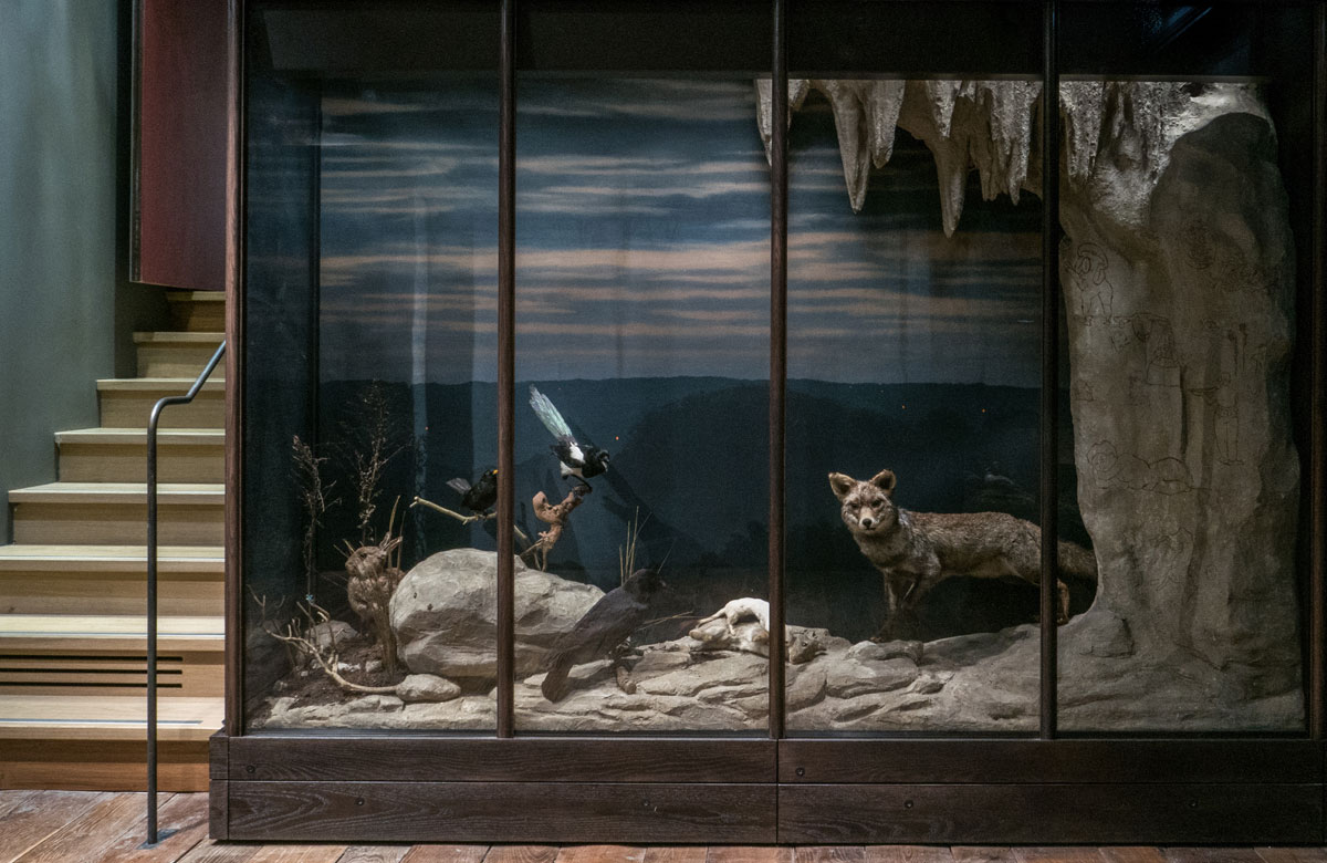 That a diorama dedicated to the irreversible effects humans have had on the natural world sits within a museum of hunting and nature is part of the project’s irony, or perhaps part of its lesson. The museum was founded by the prominent French hunters François and Jacqueline Sommer; it remains a private institution today, connected with the Club des Chasseurs, a members-only club for elite patrons of the sport. Set in a spectacular seventeenth-century hôtel particulier in Paris’s fashionable Marais neighbourhood, the museum’s aristocratic setting underscores its subject. Artefacts of the hunt including antique rifles, oil paintings of beloved hounds, and big game trophies are displayed in sumptuous interiors with high ceilings, velvet curtains, and parquet floors.